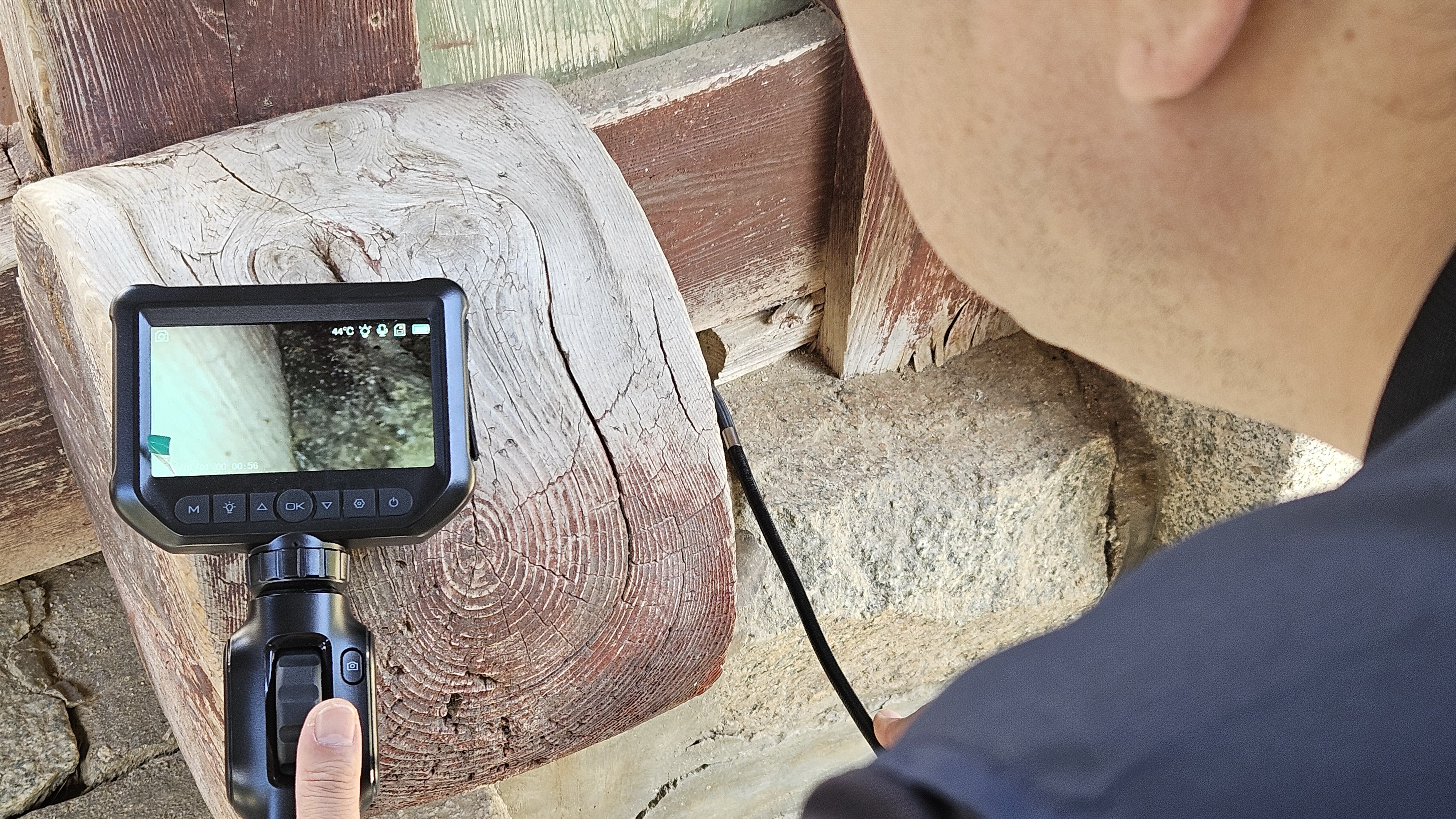 현장에서는 이러한 피해 흔적을 확인하기 위해 다양한 방법이 활용됩니다. 🪵목재를 두드려 속이 비었는지 확인하고, 🔎개미흙이나 개미길을 따라가 흰개미의 흔적을 찾습니다. 🔬보다 정밀하게는 땅속에 목재를 묻어 흰개미의 섭식을 확인하는 모니터링 장치, 진동을 이용한 비파괴 검사 장비, 내시경 카메라, 온습도 센서 등이 동원됩니다. |
