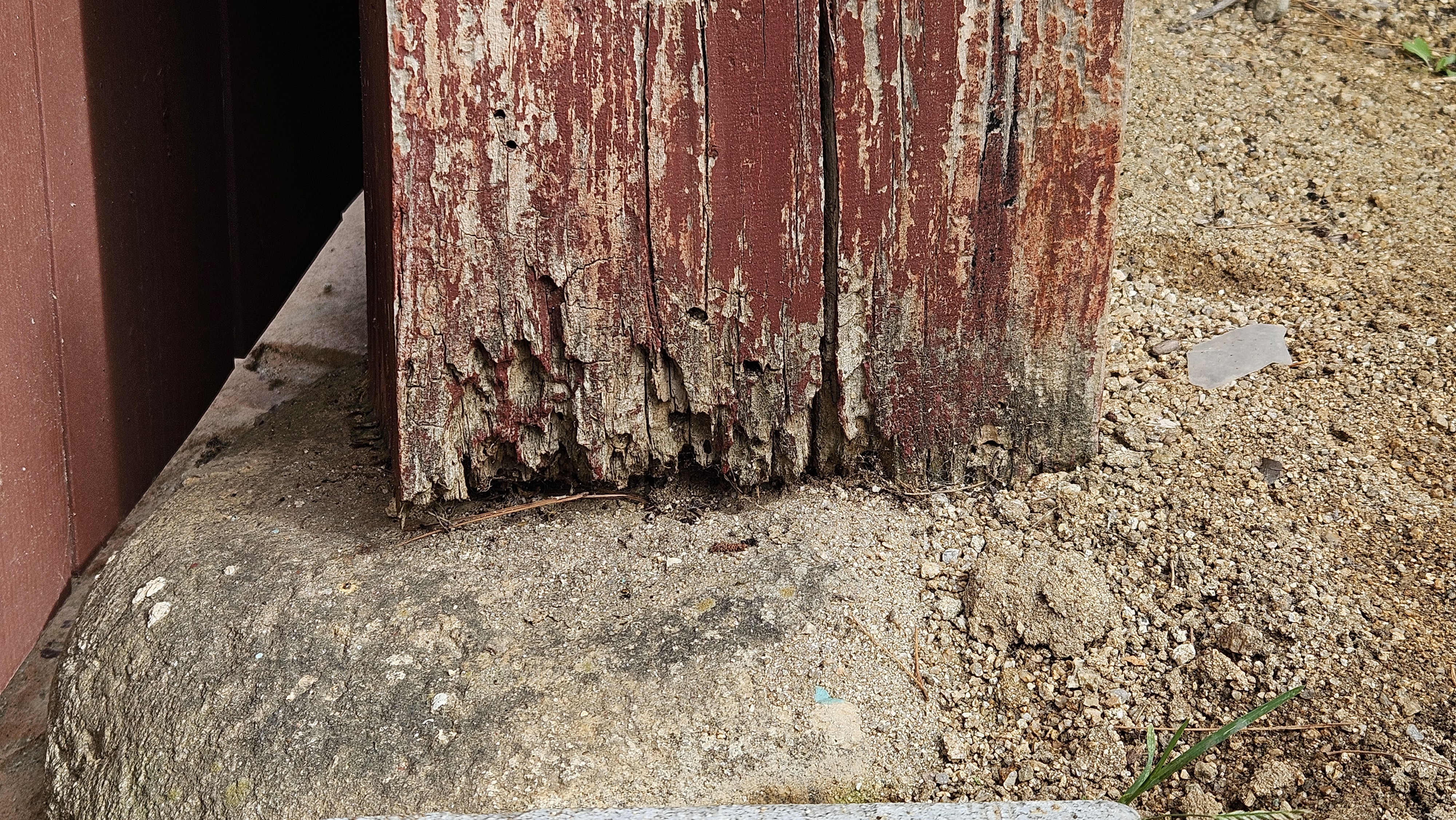 현장에서 살펴본 흰개미 피해는 서원의 구조에 적지 않은 영향을 주고 있었습니다. 소수서원에서는 지면과 직접 맞닿아 있는 목재가 주로 흰개미의 섭식 대상이 되었는데, 특히 부드러운 부분이 집중적으로 손상되어 기둥 하부의 강도가 약해진 모습이 관찰되었습니다.