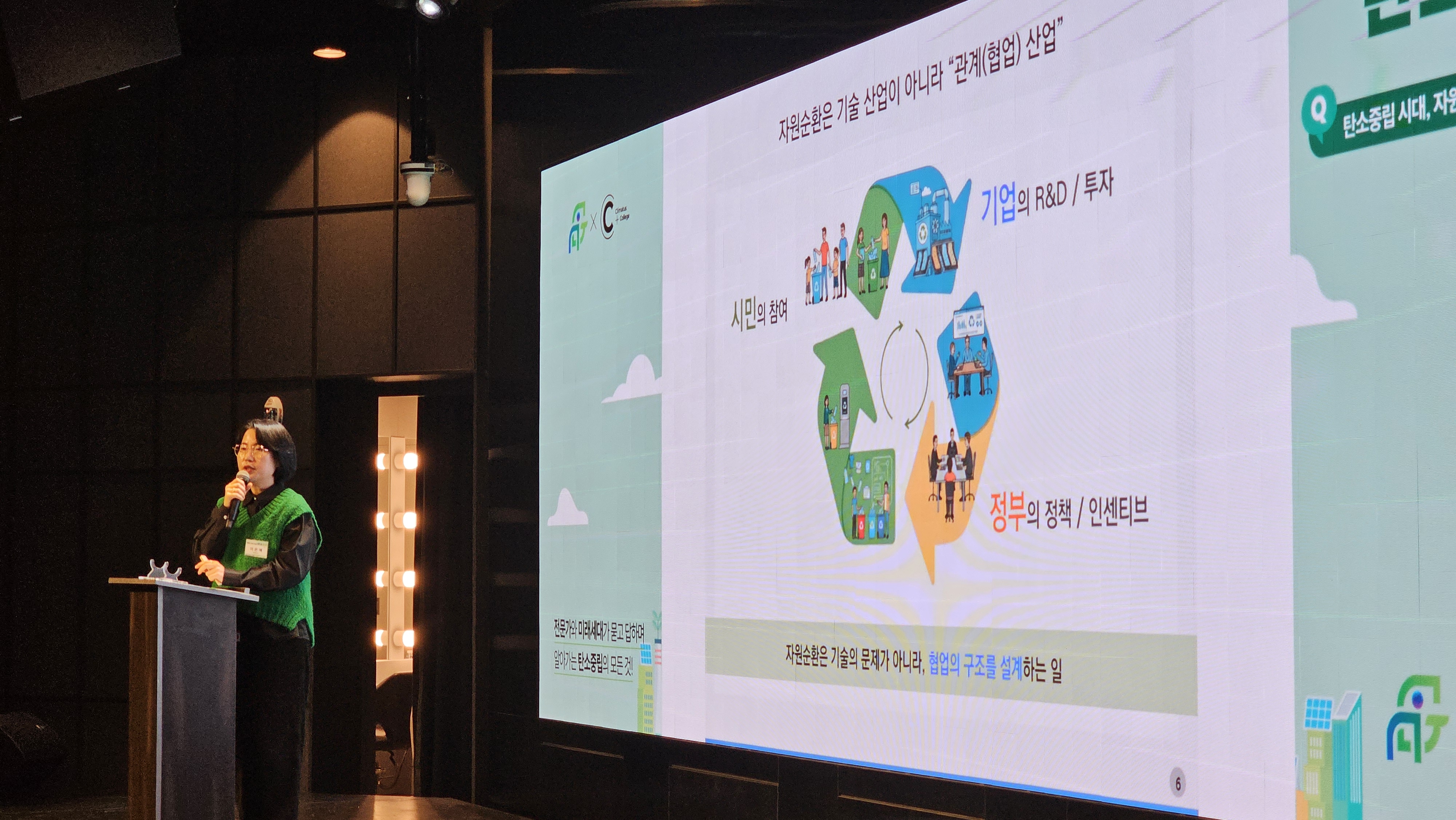 '환경혁신가'라는 직업, 들어보셨나요? 현재 ‘루프빌더(Loop Builder)’로 활동 중인 이은애 환경혁신가는 “자원순환은 어렵기 때문에 혁신이 필요하다” 며 스스로에게 이름을 붙였다고 말했습니다. 이은애 환경혁신가는 프로젝트 루프 사례를 통해 기업·시민·정부가 함께 만드는 협업 구조를 소개하며, 자원순환은 기술이 아닌 ‘관계의 산업’이라고 강조했습니다.