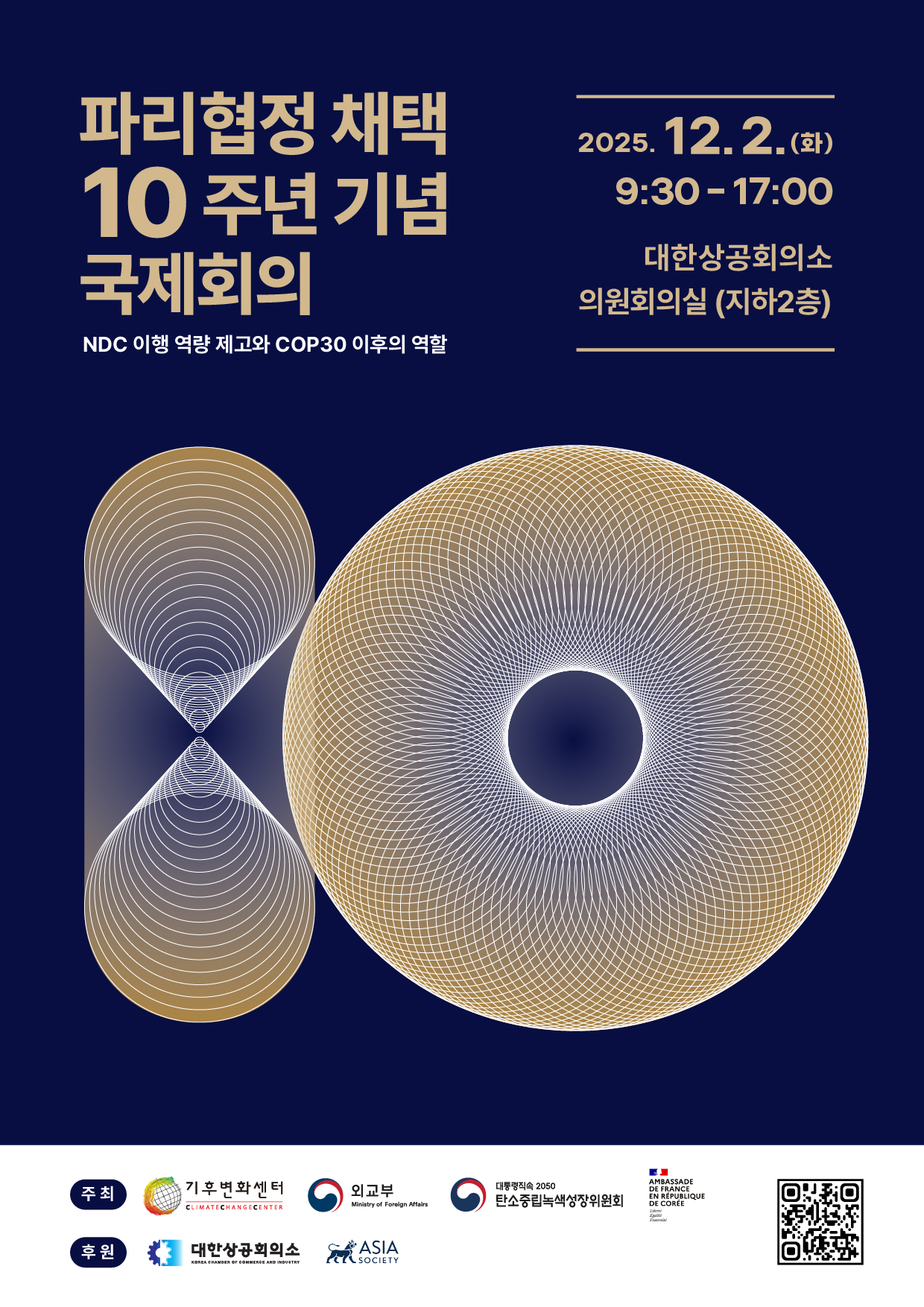 [✨Save the date!] 파리협정 채택 10주년 기념 국제회의: 기후 이행의 전환점에서 바라보는 다음 10년의 과제(12.02(화) 9:30, @대한상공회의소)