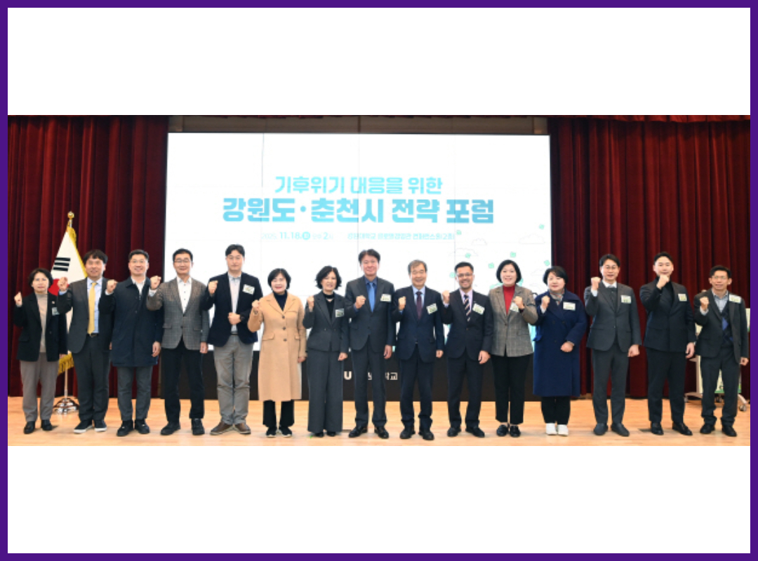 11월 18일, 최재철 기후변화센터 이사장은 「기후위기 대응 강원도·춘천시 전략 포럼」에서 기조강연을 통해 탄소중립 시대에는 지역의 선택과 실행력이 국가 경쟁력을 좌우한다고 강조했습니다. 재생에너지·분산에너지 기반이 강원도·춘천에 갖는 전략적 의미를 짚으며, 대학·지자체·산업의 연계가 지역 기후전환의 성패를 결정한다는 메시지를 전했습니다. | 전문 바로가기 |