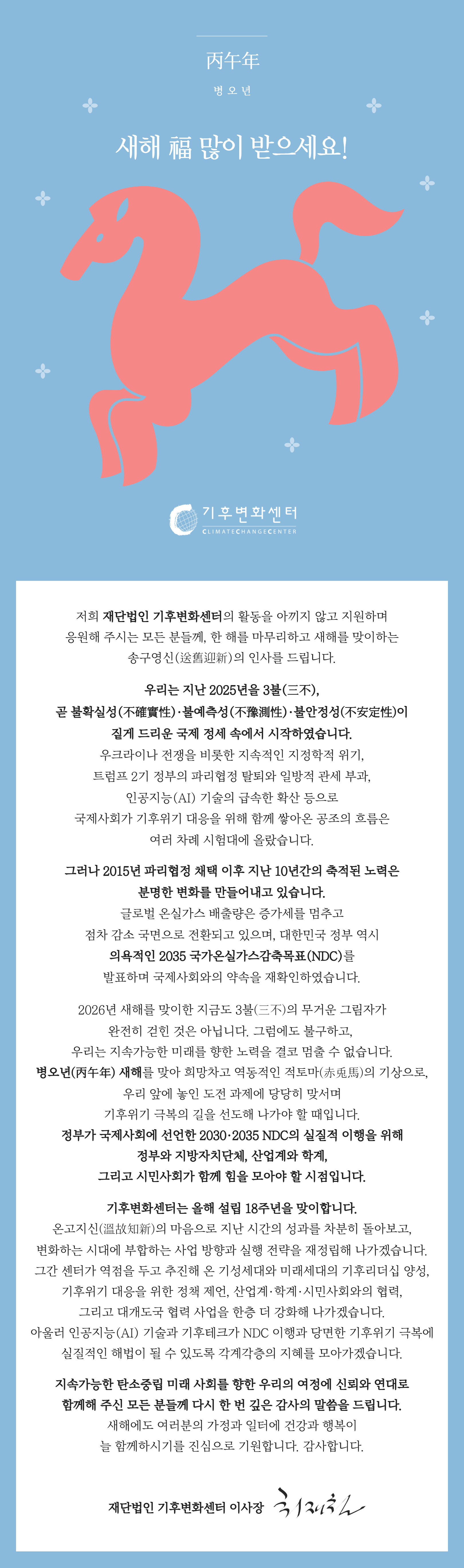 [기후변화센터🍀] 연말의 성찰 위에, 이행의 새해를 소망하며 ─ 2026 병오년, 새해 福 많이 받으세요!
